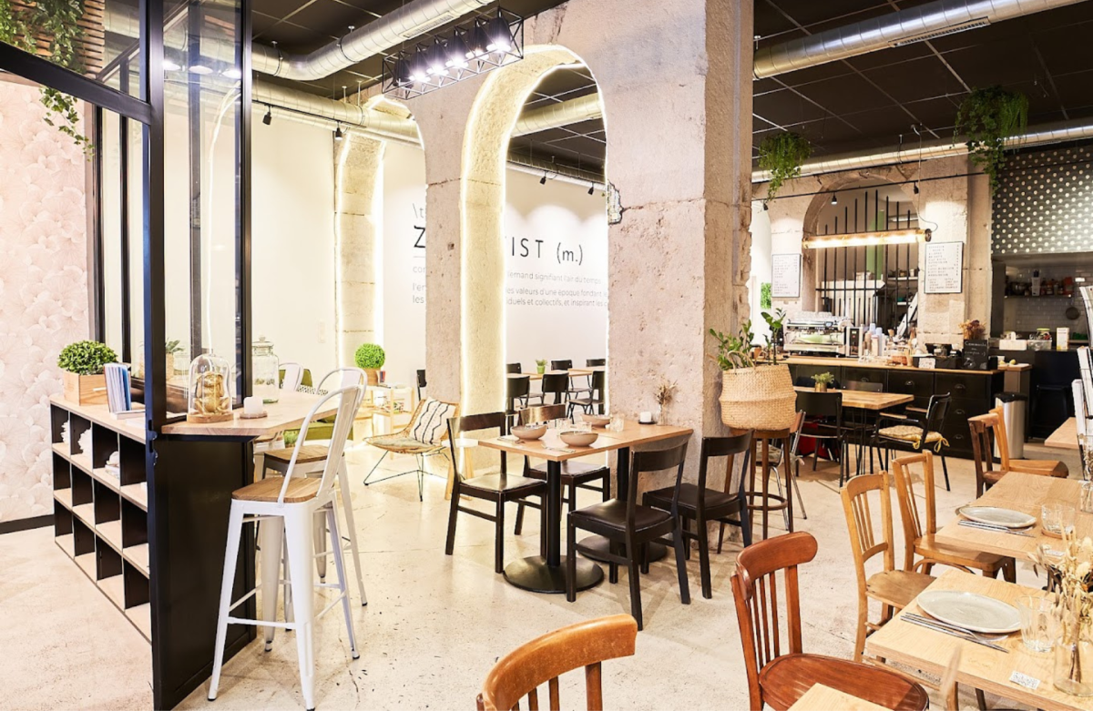 Moderne, durable et végan, Zeitgeist café est un coffee shop à l'accent germanique du 1er arrondissement de Lyon. Cette adresse, dont le nom signifie « esprit du temps » en allemand, est un shop 100% végétal. Sur place, des gâteaux, des cookies, des cheesecakes, des brioches ou des crêpes (à partir de 3 euros) et de succulents breuvages à base de cafés préparés par de véritables baristas. Ici, le lait végétal n'est pas en supplément ! Pour s'installer, un vaste espace, avec des tables espacées, dans une ambiance calme. Il existe même un petit coin lecture et un espace pour suivre des ateliers inspirants !