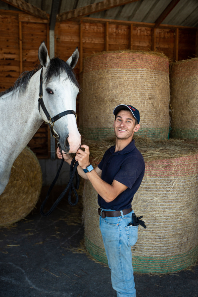 You would need to rise early to see Yoann and his team take care of their mounts. In summer, their work begins at five in the morning. Right up until 11 am, the horses are taken out for training in order to physically prepare them for the races. “We ride around five horses each,” tells us Yoann. After feeding the horses and cleaning the stables, they often have to leave around midday for races in Paris, Marseille, La Teste or elsewhere. “When we do a race in Lyon, it’s more relaxing,” he says half-jokingly, as life on the racecourses is like a film in fast forward. In the space of an afternoon, a jockey can ride in up to eight races! “And because they are increasingly held in the evening, we find ourselves having to do the return trip at night,” he continues. In short, there is little time to rest because they start all over again the next day!
