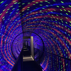 Experiment with the concept of illusion in real life. Prepare to be amazed and disoriented by tricks of perspective, optical illusions, distorting mirrors and other installations.