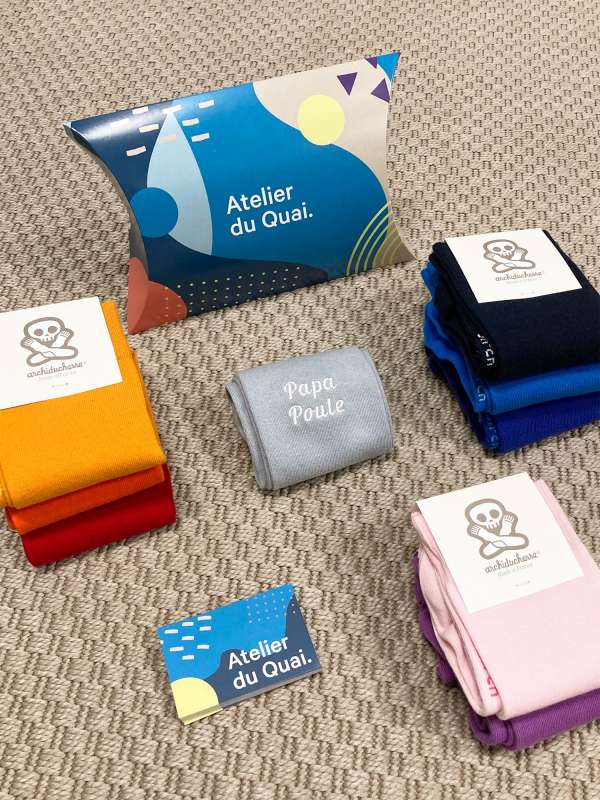 L’Atelier du Quai vous propose des chaussettes à personnaliser en impression ou en broderie. Après avoir soigneusement sélectionné pour vous des chaussettes de fabrication 100% française de chez Archiduchesse, vous choisissez l’imprimé ou la broderie.