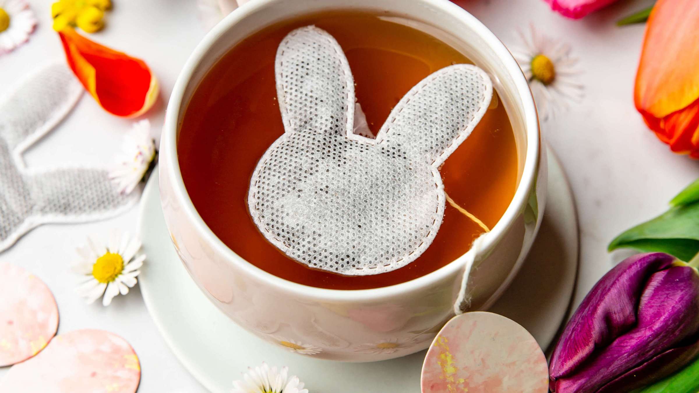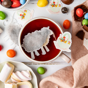 De délicats petits sachets biodégradables confectionnés à la main en forme de lapins, moutons, trèfles et fleurs... autant de symboles des fêtes pascales qui viendront combler vos tasses de thé.